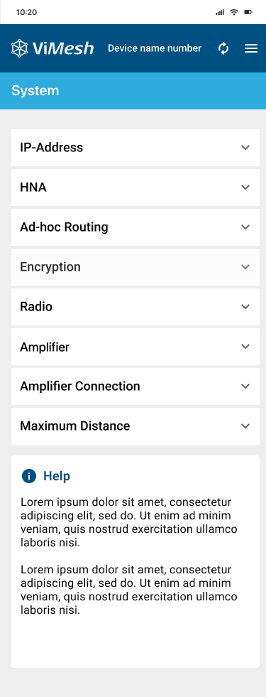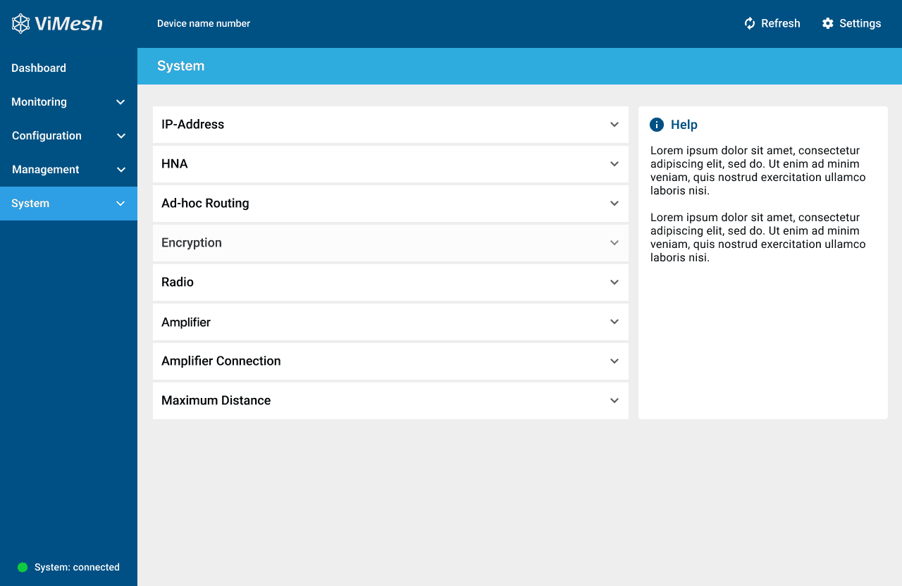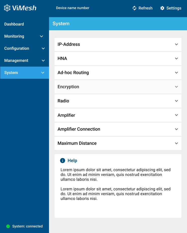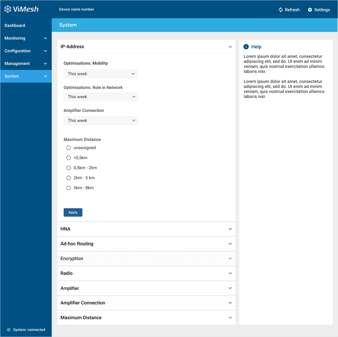Redesign of a web application for controlling and configuring communication nodes. The goals of this project were to improve the usability and visual design by creating a new concept and applying the CI of the company in the UI design